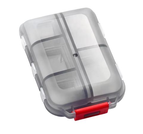 Caja de almacenamiento de medicamentos de plástico transparente portátil de 10 rejillas, pastillero Rectangular pequeño de doble capa, seguro para alimentos, sellado de 10 rejillas