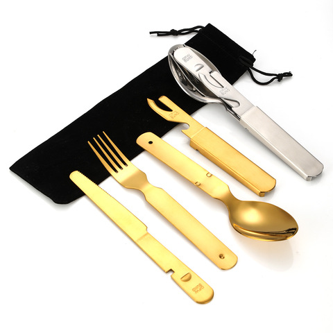 Juego de cubiertos portátiles de acero inoxidable, fuente de fabricantes, vajilla para exteriores, cuchillo multifuncional plegable, cuchara para occidental